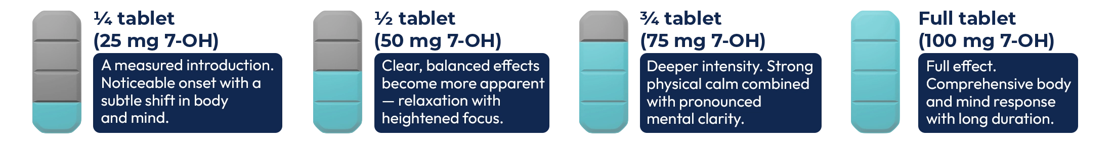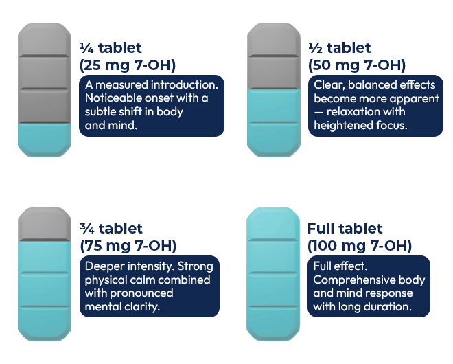 PROXIE uses a purified extract of 7-hydroxymitragynine — the most active part of kratom — without the plant matter, bitterness, or nausea. That means faster onset, cleaner effects, and precise dosing in a convenient tablet. No guessing, no brewing, no crash.