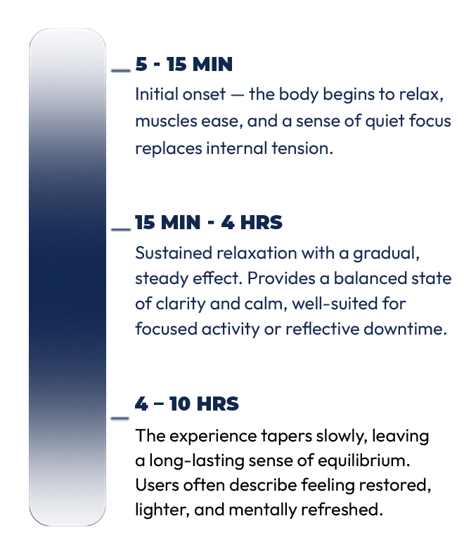 Simple breakdown of how it works in your brain/body, and what kind of effects people typically feel (calm, focus, mood lift, etc.).