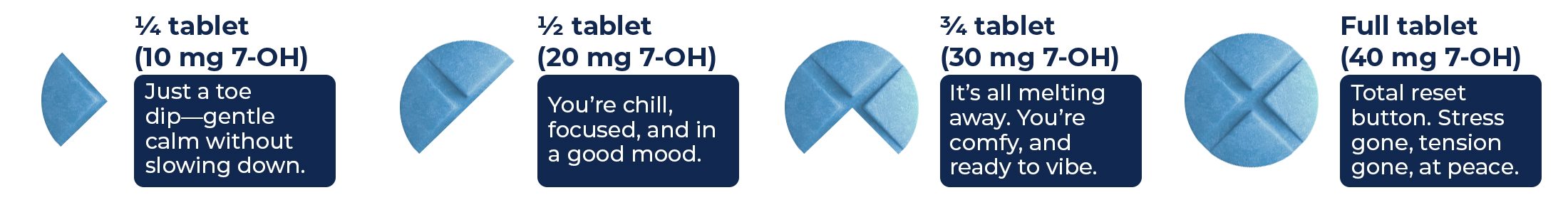 PROXIE uses a purified extract of 7-hydroxymitragynine — the most active part of kratom — without the plant matter, bitterness, or nausea. That means faster onset, cleaner effects, and precise dosing in a convenient tablet. No guessing, no brewing, no crash.